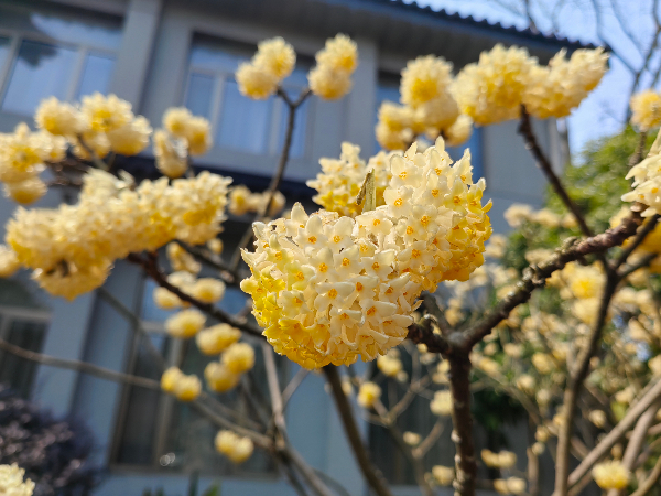 接着我们来到了著名的杨公堤,这个时节的杨公堤上,沐着丝丝凉意的微风,呼吸着清新的空气,时不时出现一两棵桃树、樱花、垂丝海棠,会让人情不自禁的展开笑意。在杨公堤行走约一两公里,我们到达了今天中午就餐的西湖国宾馆。宾馆位于西湖的核心,被誉为“西湖里的西湖”。庭院内建筑精巧、曲廊修竹、古木奇石、一步一景。让大家都很期待的西湖国宾馆百年玉兰花王开了!玉兰花伫立西子湖畔,肆意绽放,美得傲骨,淡雅又迷人。春风拂面,馥郁花香随风而来。