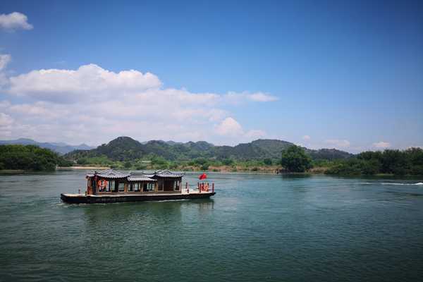 随后,大家奔赴朱潭山和小赤壁景区。朱潭山景区就是围绕着练溪河展开的,随处都是如诗如画的景,大家纷纷拿出各自的手机拍照,记录下美好的景色和身边的人。出了朱潭水,大家来到了小赤壁。刚经历了山水诗画,随即就被眼前峻峭的奇石所吸引。这处岩壁就像巨幕般呈现在眼前,就连站在远处也难求其全境。这就是“小赤壁”!岩壁上有许多垂直的色带,有朱红,有焦黄,错落有致,各种色调层层叠叠,其中刻着“蓬莱仙境”四个大字,远远观之,异常雄伟。此刻已是傍晚时分,金色的落日洒向小赤壁,折射出温和的光泽。今日行程至此结束。人与自然,鬼斧神工,愿我们人类与大自然和谐相处,相依相畏。