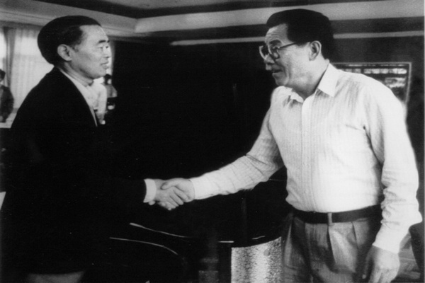 1991年,中共中央政治局常委李瑞环同志在杭州接见毛江森院士 | 亚洲体育博彩平台